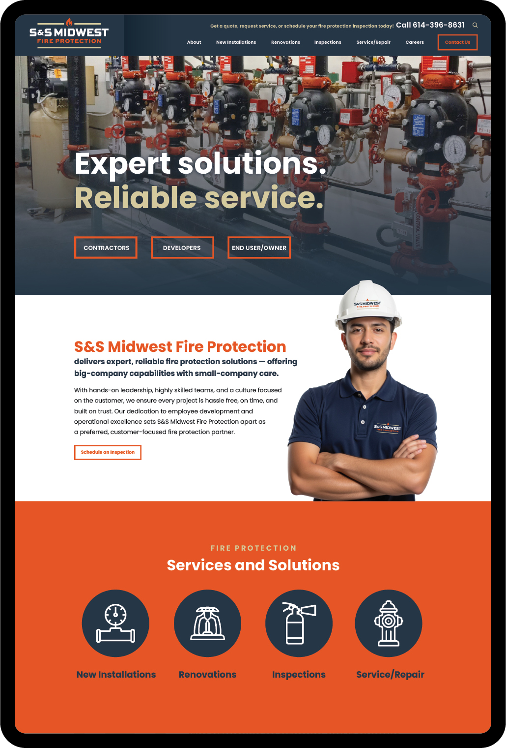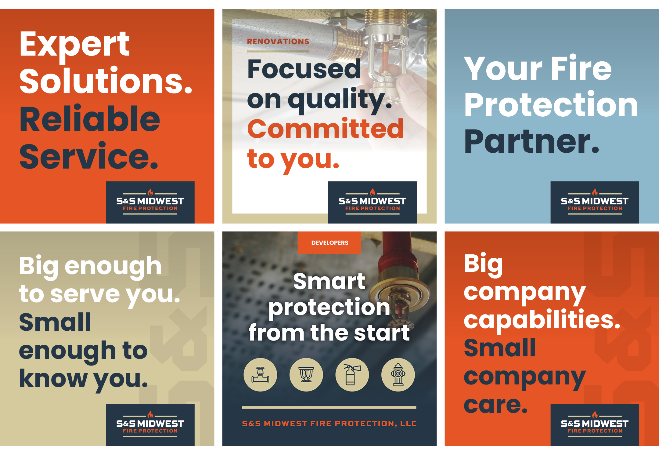 S&S Midwest Fire Protection delivers expert, reliable fire protection solutions – offering large-company capabilities with small-company care. With hands-on leadership, highly skilled teams, and a culture focused on customer service, core values, quality, and communication, they ensure every project is hassle-free, on time, and built on trust. Their dedication to employee development and operational excellence sets S&S Midwest Fire Protection apart as a preferred, customer-focused partner. After eleven years of remarkable growth, they realized their website wasn’t keeping up. They now have a new website – and a new brand!